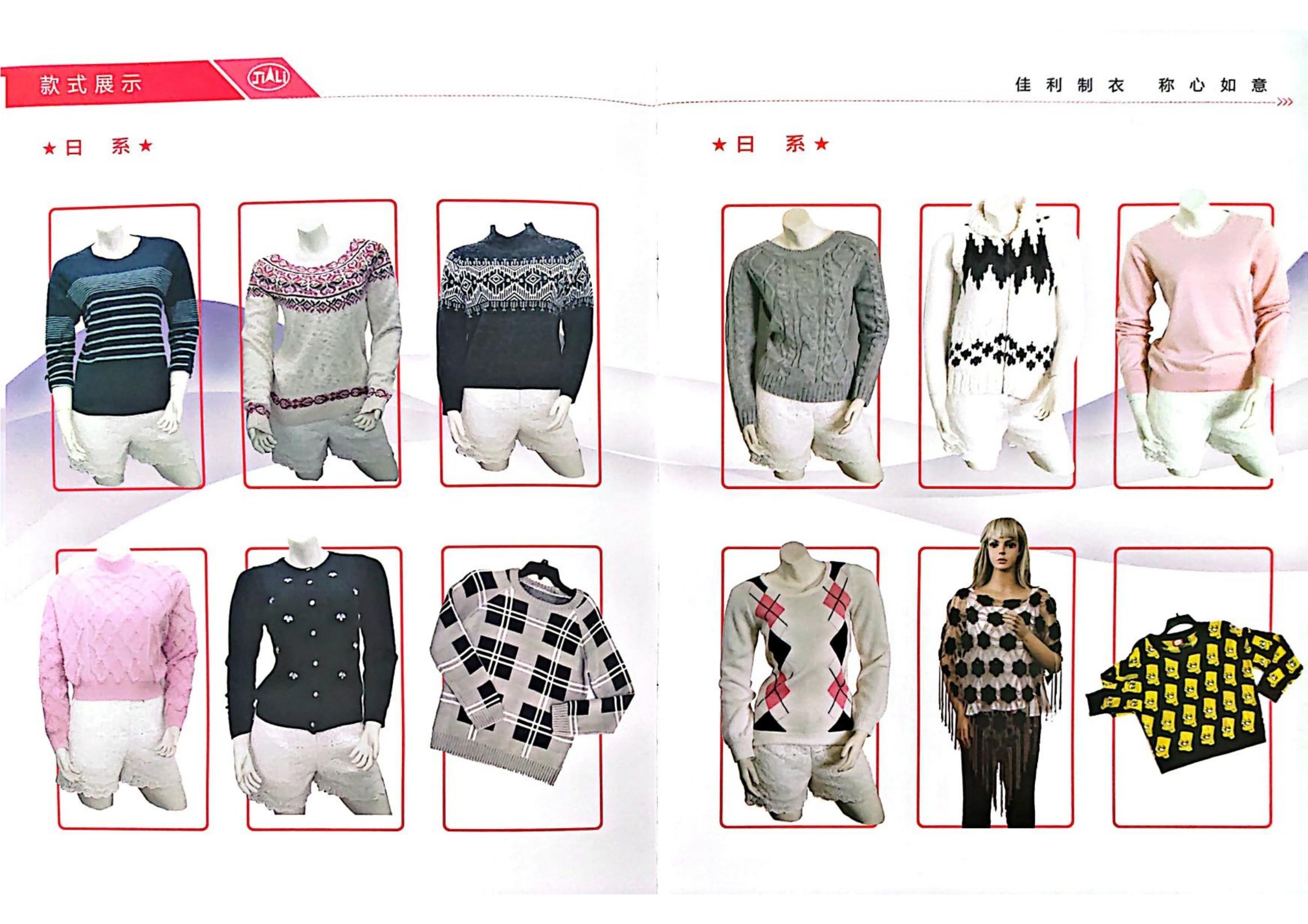 山東省乳山市佳利制股份有限公司于2001年2月成立,位于乳山市城區(qū)工業(yè)園營(yíng)口路。現(xiàn)有從業(yè)人員260人,其中男性100人,女性160人。固定資產(chǎn)5000萬元,占地22000㎡,建筑面積13800㎡。主要生產(chǎn)各種針型的毛衫及手鉤、刺繡等工藝服裝,針織、梭織面料服裝,主要銷往日本、美國(guó)、意大利、英國(guó)等幾十個(gè)國(guó)家和地區(qū)。